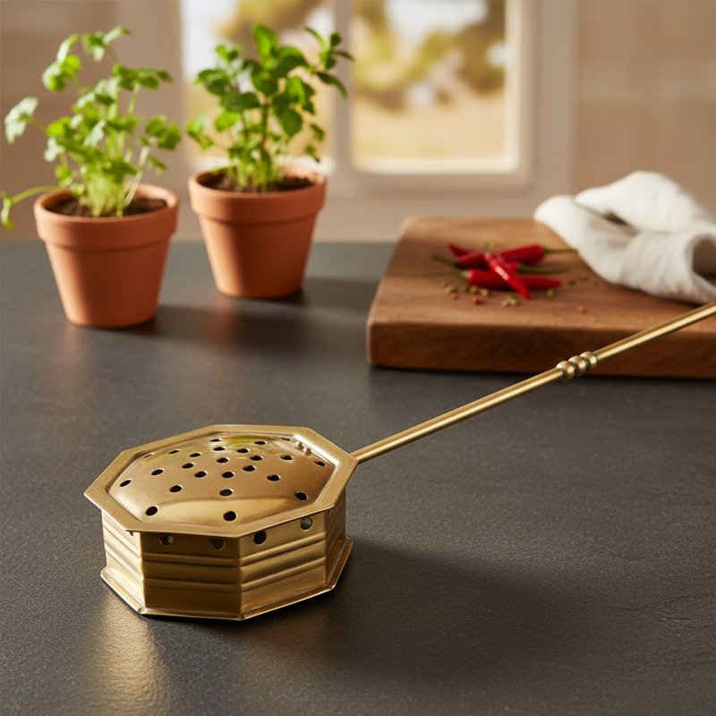 The collection includes finely crafted incense burners that enhance spiritual spaces, elegant brass oil lamps that add a classic glow to homes and temples, and robust brass spatulas and cooking pots designed for daily use. These products are not just visually appealing but also practical, heat-resistant, and known for their natural antimicrobial properties, making them ideal for both decor and kitchen applications.